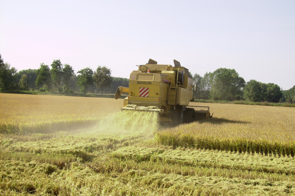 Harvesting between September and October with combine harvesters, followed by drying and processing of the rice.
