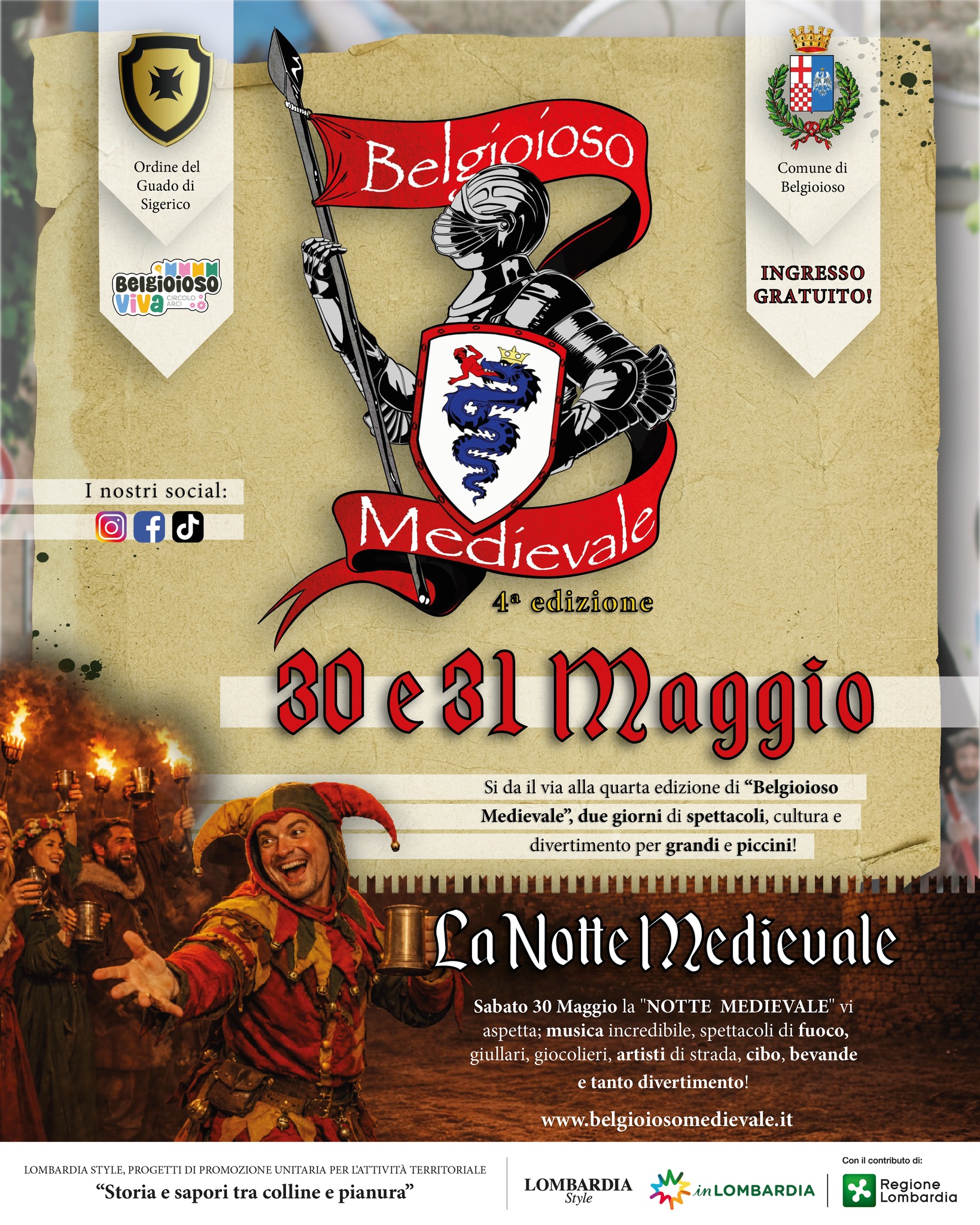 La Città di Belgioioso, in collaborazione con Ordine del Guado, vi invita a partecipare all'evento "Belgioioso Medievale", che si terrà nelle vie e piazze di Belgioioso.