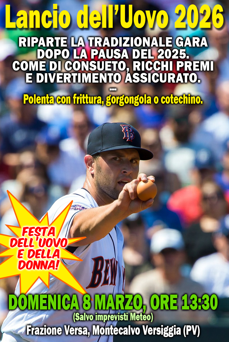 In Alta Valle Versa appuntamento con il tradizionale “Lancio dell’uovo” che si terrà domenica 8 marzo 2026 dalle ore 13.30 a Montecalvo Versiggia, nei pressi del cortile del ristorante “Prato Gaio“.