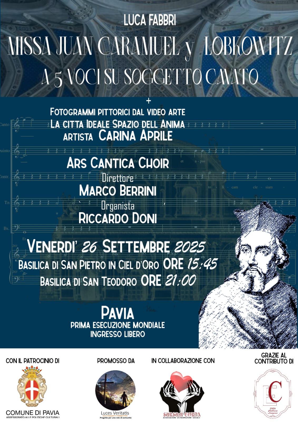 La Missa “Caramuel” è promossa dall’Associazione “Luces Veritatis” in collaborazione con l ’Associazione “ Sursum Corda ” di Pavia, per il suo alto profilo artistico e spirituale, che si propone come momento di riflessione e di elevazione collettiva, nel solco della grande tradizione musicale europea. L’opera è concepita come evento celebrativo che unisce arte, fede e memoria storica, con un forte valore simbolico e culturale. L’ evento è gratuito, ma è gradita una libera donazione come contributo per le spese sostenute.